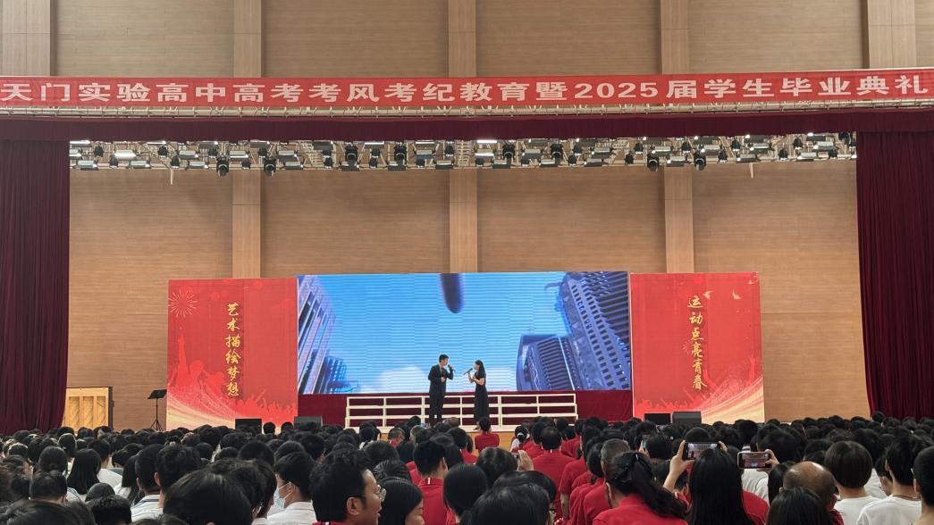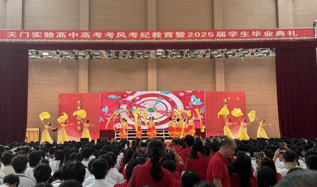 (通讯员 邹卓 摄影 谭姣莹/李炳稼)5月29日,bevitor伟德国际1946师生前往天门实验高级中学开展“关爱考生中学行”招生专项活动,为该校毕业典礼活动送去精彩表演,受到广大师生热烈欢迎。