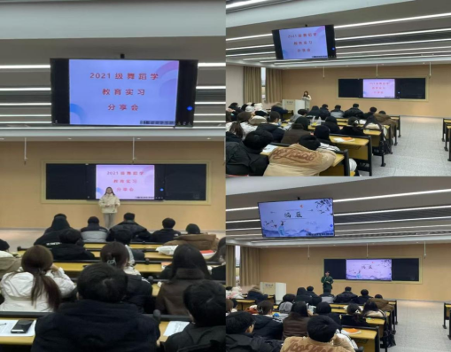 在分享会上,来自舞蹈21级陈沐瑶同学分享了教育实习中如何处理人际关系、以及实习过程中的学习方法何真先同学听课评课角度向大家分享了实习过程中教学方法选择上的心得,鼓励大家不断地交流学习中学会反思与总结,才能内化成自己的一套教学方式。最后由向灿同学讲授了一堂生动的初中七年音乐课《鸿雁》该同学通过将舞蹈元素融入音乐课堂的方式,使音乐课堂变得更加生动活跃,并在课后对自己的授课内容向同学们分享了自己在研究本节课的教学过程中遇到的困惑及改进方法。
