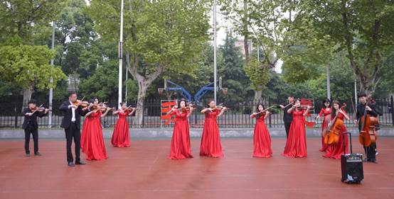 升旗仪式上,音乐11703班向冉冉同学进行了题为《学风建设、争创优秀》的国旗下演讲,演讲围绕全院同学始终牢记“形象美、气质佳、技能强、素质高”的培养目标,不懈努力的开展思想建设、学风建设、文化建设、等一系列的人文素养活动,鼓励全院同学走出寝室,走进教室,走下网络,走向操场,从而促进各方面素质得到大力提升。随后,优美的小提琴声响起,将全场的主旋律带入到了《我和我的祖国》歌曲中,全院师生跟随音乐的节奏进行了声势浩荡的大合唱,场面震撼、壮观。升旗仪式在合唱尾声中结束。