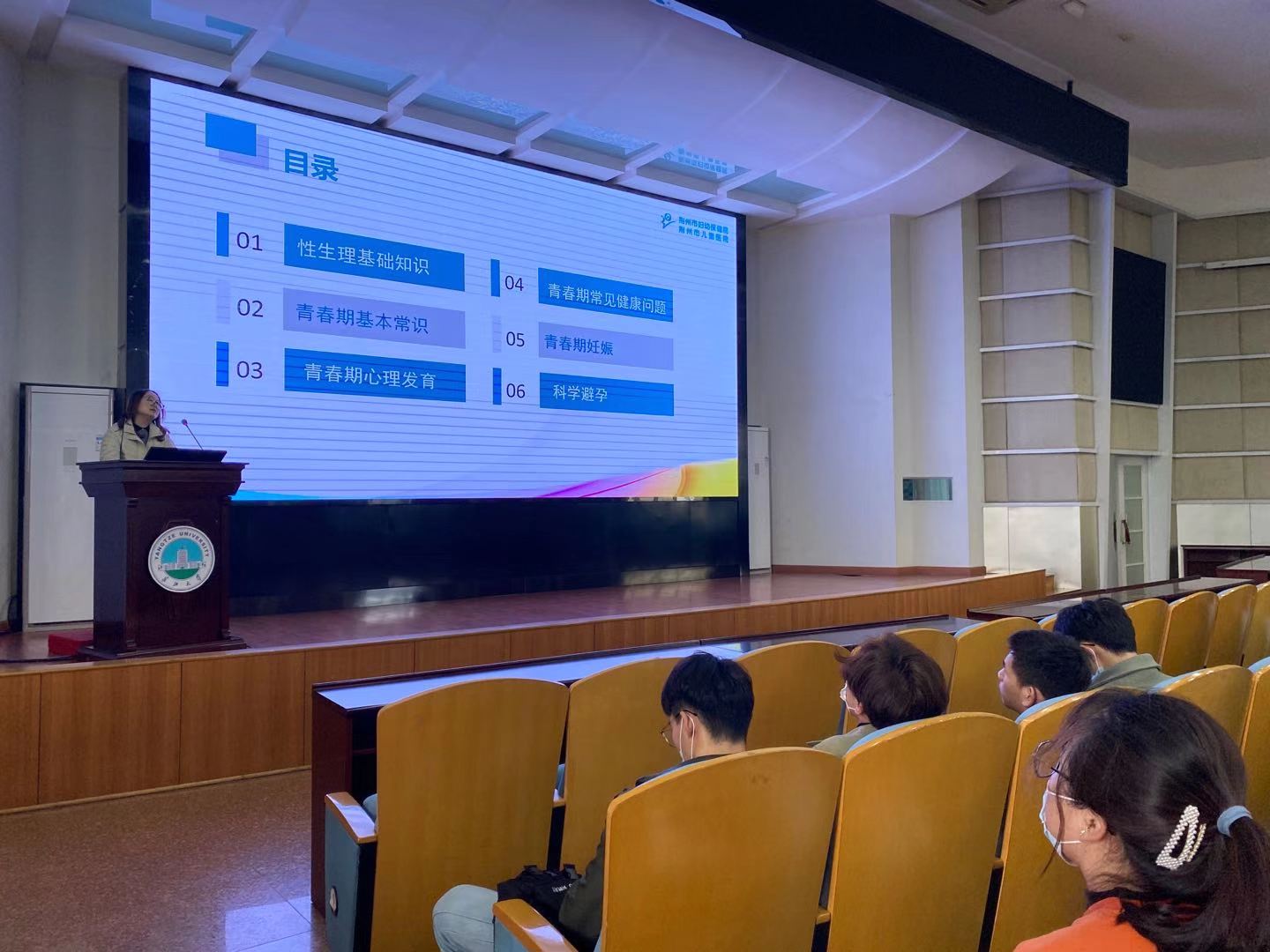 郭妍医生在讲座中主要围绕“性生理基础知识、青春期基本常识、青春期心理发育、青春期常见健康问题、青春期妊娠和科学避孕”六个方面进行了深入浅出的讲解。将老员工如何树立正确的恋爱观、婚姻观;如何正确认识和接纳自己;如何处理人际关系穿插其中。寄语同学们“不懂爱情不要恋爱;不负责任不要乱来、爱她请别伤害她”,希望同学们在大学校园生活中文明恋爱,为美好青春添彩。在最后的互动环节中,对同学提到关于HPV疫苗的问题,郭医生一一进行了耐心解答。