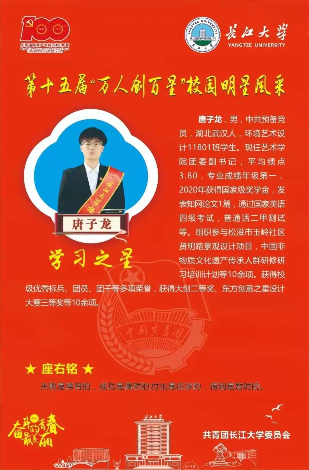 希望我们广大bevitor伟德国际1946的学子,见贤思齐,向这些优秀的万人创百星学习,以梦为马,不负韶华。为自己的青春留下流光溢彩的一笔印记,为我们bevitor伟德国际1946和学校争光添彩。