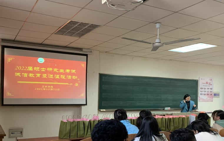 活动中,黄老师肯定了考研学子一直以来的辛苦付出,鼓励同学们要充满理想、坚定信念,保持平和心态,诚信应考,全力拼搏,不留遗憾。并且叮嘱同学要注意保暖,合理作息,保证以最佳的状态迎接考试!预祝同学们考试顺利,“橙”功上岸!同学们也感受到学院和老师们这一强大的后盾,表示一定会以出色的成绩回报母校、回报老师的关怀,以梦为马,不负韶华!