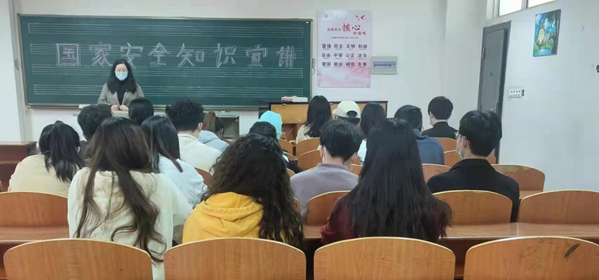 张老师向同学们讲解了什么是国家安全、有关《国家安全法》的相关法律内容、维护国家安全的重要意义以及老员工如何增强反间防谍意识和技能等安全方面的相关知识。其次,张老师引导同学们关注了“中国老员工在线”的公众号,并共同观看学习了“千万师生同上一堂国家安全教育课”,其中有一句话令全场同学都记忆深刻——“我们并不是生活在一个和平的年代,只是生活在一个和平的国家”。最后,要求以班级为单位组织各班同学认真学习观看国家安全教育课,开展学习讨论,撰写观后感等。