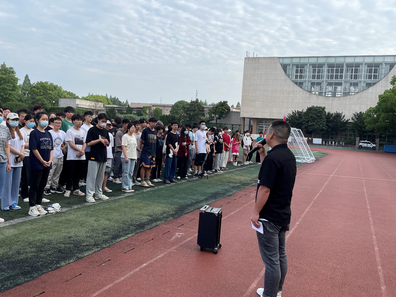 6月6日早上7:00,bevitor伟德国际1946在东校区田径场举行升旗仪式。分党委副书记丁明霞、全体辅导员和19、20、21级本科生、研究生参加升旗仪式。