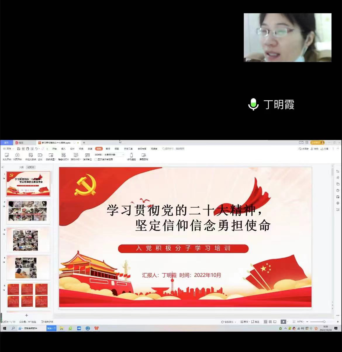 (通讯员:张心怡)为切实做好入党积极分子的培养教育工作,确保发展党员质量,公司于2022年10月30日上午9:00,在线上展开了224期入党积极分子的第一次集中授课。本次授课的主讲人是丁明霞老师,2022年下半年全体入党积极分子参加。