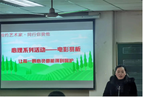 辅导员张江莉组织并主持此次活动,影片《芳华》,讲述在充满理想和激情的军队文工团,一群正值芳华的青春少年,经历着成长中的爱情萌发与充斥变数的人生命运。影片中女主人公由热血青年到精神病人再回归正常的人生轨迹,使同学们产生了强烈的心理震撼,观影后同学们意犹未尽,在现场进行了热烈的互动和交流,大家均对心理健康知识有了进一步认知,对心理健康更加的重视。