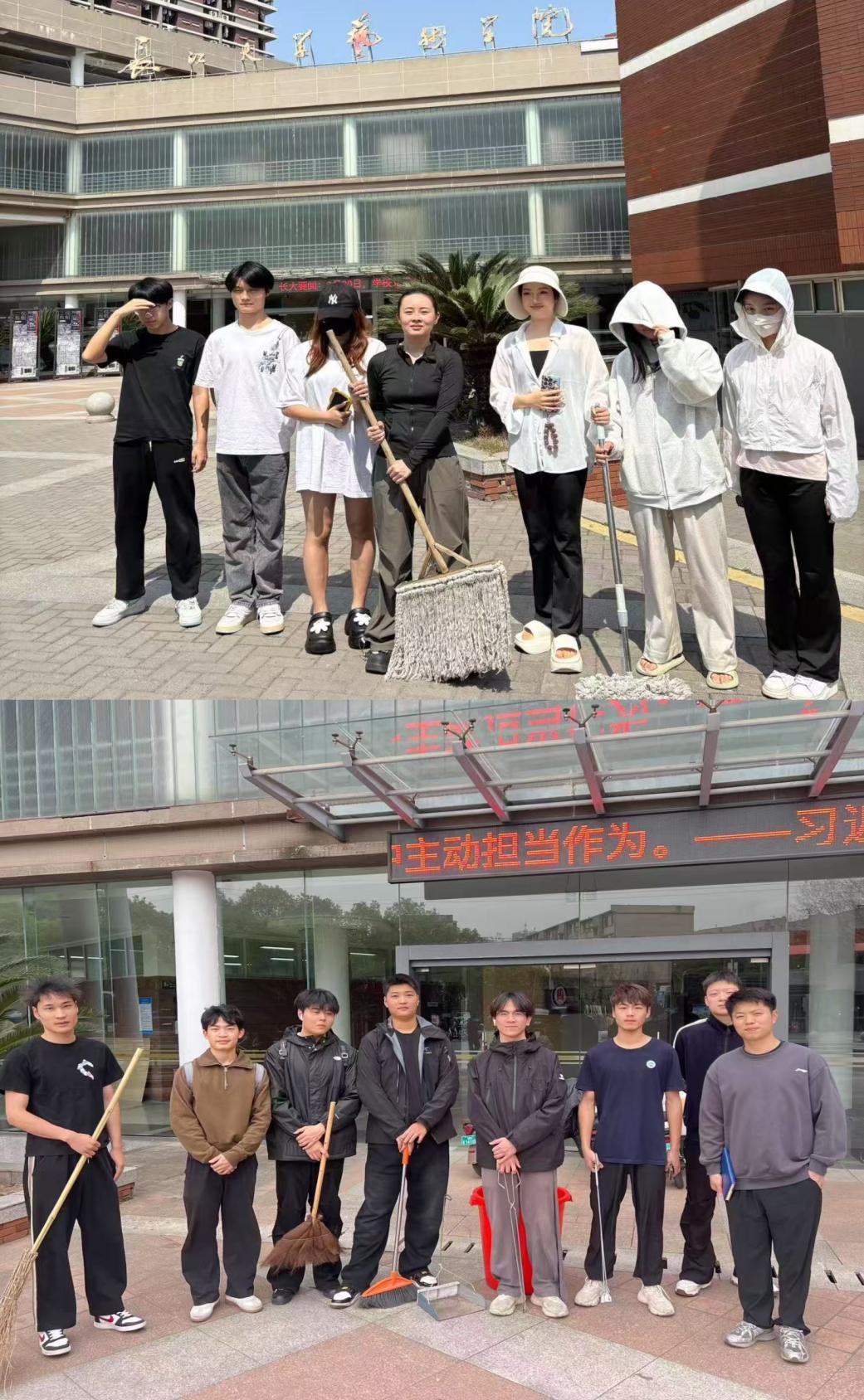 在琴房区,音乐专业的同学们细心擦拭每一架钢琴的琴键,清扫地面的灰尘,为下一个前来练习的同学营造一个纯净的音乐空间。美术教室内,美术学和设计学的同学们则忙着清洗画具、整理静物模型、归类教学器材,让充满灵感的地方更加井然有序。而在舞蹈练习室,舞蹈专业的同学们对把杆、镜面和地板进行了细致的清洁,确保这片挥洒汗水的舞台始终明亮如新。