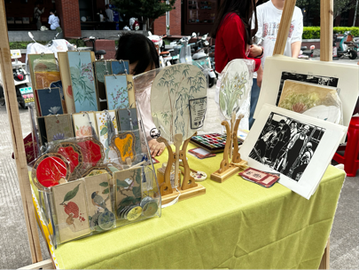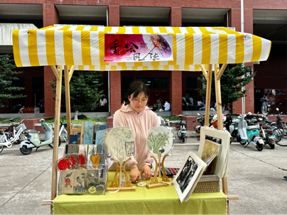 “手绘风华”展区聚焦绘画艺术的多元表达,展出员工创作的国画、油画、水彩、版画等作品。展区负责人现场绘制图画,作为礼品送给驻足师生,展现了bevitor伟德国际1946学子扎实的专业功底与人文情怀。