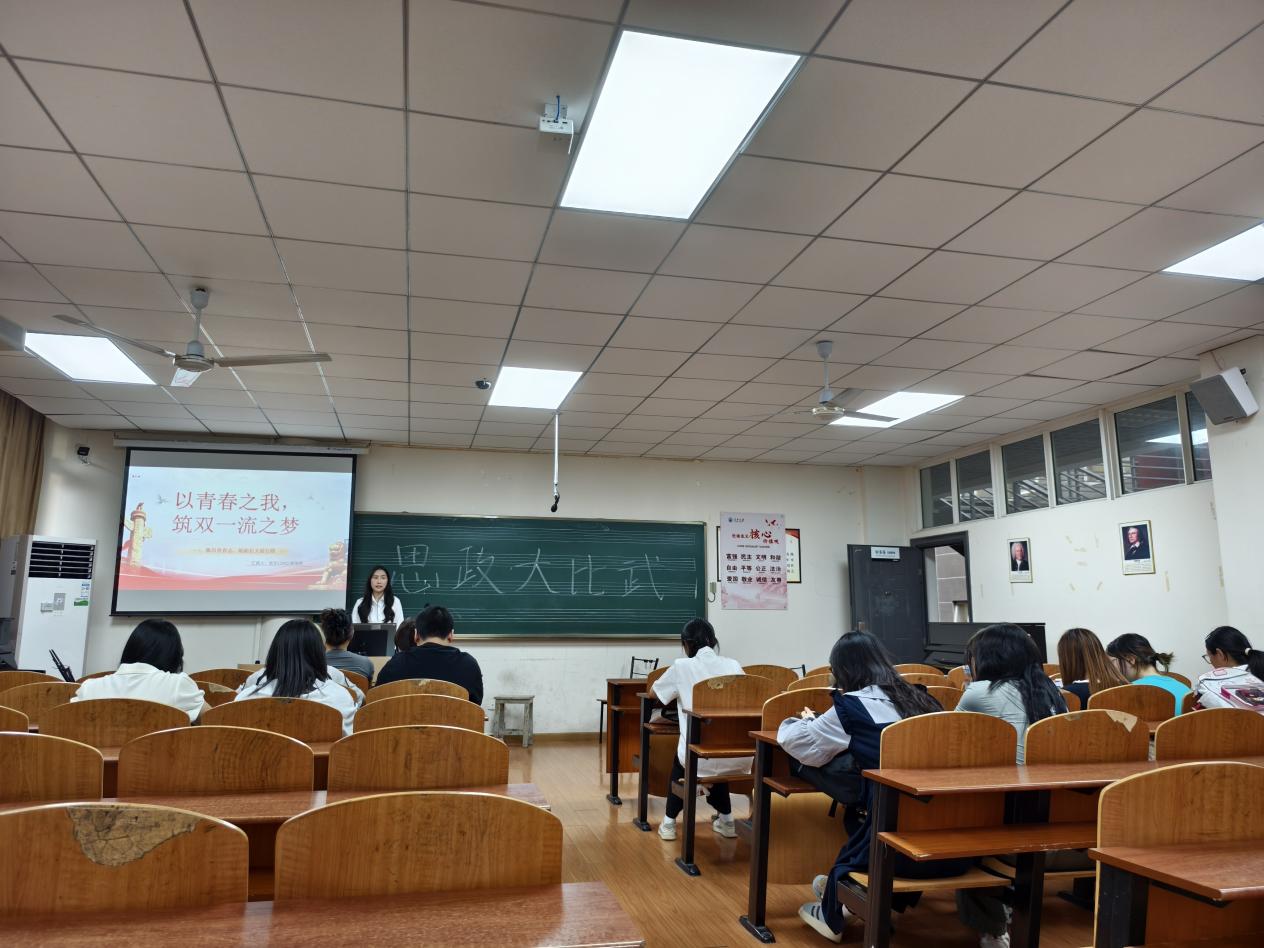 在主题团课展示环节,各团支书围绕“青春当奋进,决胜‘双一流’”主题,以PPT形式进行展示。他们结合实际,围绕习近平新时代中国特色社会主义思想、习近平总书记关于青年工作的重要论述、党的二十大和两会精神等内容,表达对党的理论和精神的学思践悟。