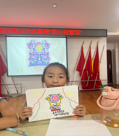 “虎座鸟是楚国的‘战斗机’!”志愿者林晓阳引导小朋友了解文物典故,再手把手教彩笔绘画技法。孩子们用金黄、翠绿、朱红三色“复刻”镇馆之宝,一张张独具特色“平面文物”诞生了。