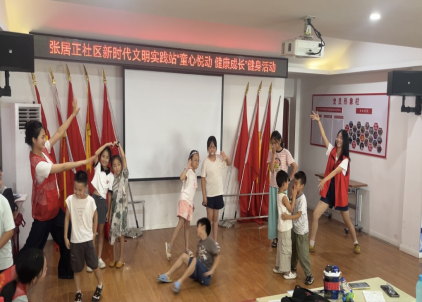 (通讯员 杨欣宇 刘莉红 吴雨聪 刘欣晨 林晓阳)“抬头、展臂、踢腿!”8 月 1 日早上9:00,在张居正社区三楼,来自bevitor伟德国际1946长青艺梦志愿服务队的4名老员工志愿者带着15余名小员工跳起活力四射的《向未来出发》健身操。这是暑期爱心托管班第四周的“固定开场”,也是老员工志愿者们每天上岗前的“热身仪式”。从晨光到暮色,这群“志愿红”用一周时间,把托管班变成了“运动+文化+爱国”三位一体的成长乐园。