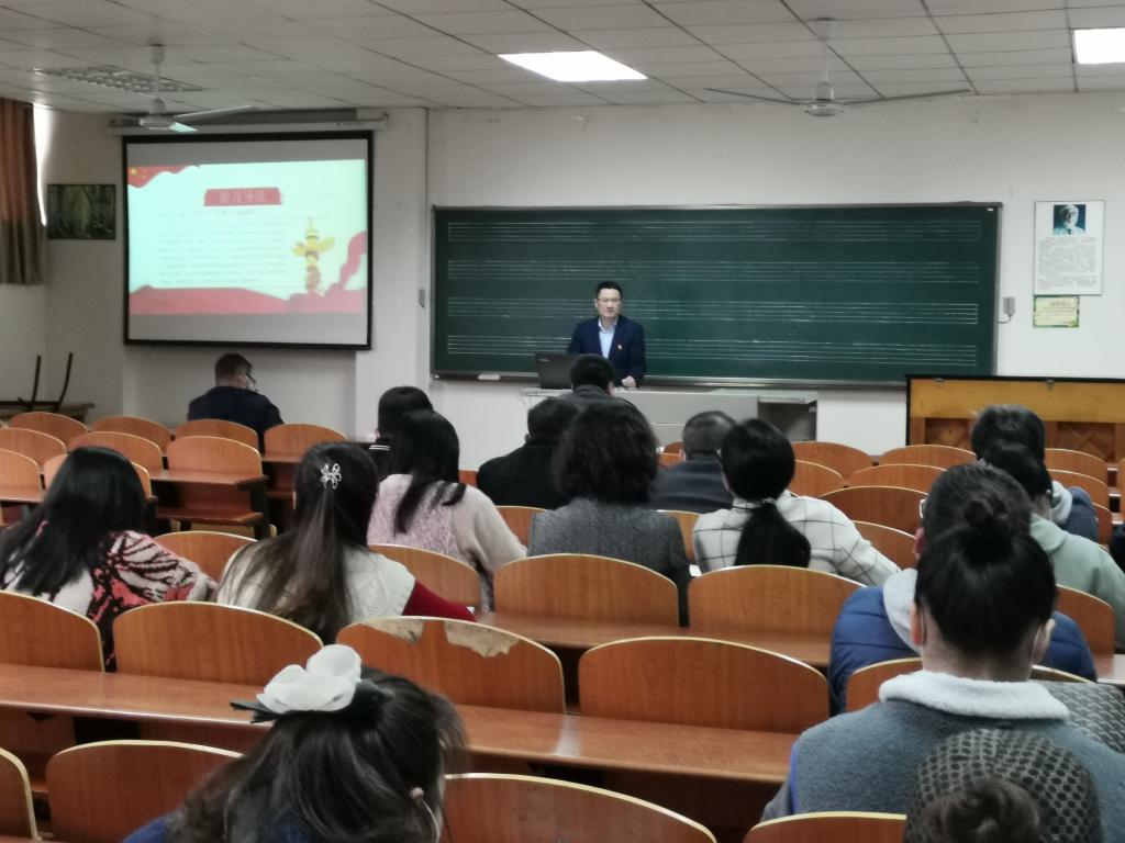 4月8日下午,公司党委书记王学峰在Y210教室为全公司党员上党课。王书记以“学党史·颂党恩·跟党走”为主题讲授了一堂生动的学习党史专题党课。全院教职工党员和员工党员代表参加了党课。