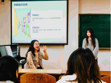 随后,曹彦莉老师对声母和韵母在声乐中的运用进行了细致讲解。在介绍声母的定义与分类后,她现场示范了声母的发音技巧,并结合众多演唱片段,分享声母在歌唱中的实际应用。谈及韵母部分,同样通过对韵母定义、分类的梳理,传授了发音技巧,引导听众理解如何通过韵母的巧妙运用,塑造丰富的声乐表现力。