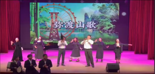 《弥渡山歌》呈现的是主创人员融合歌舞表演唱和器乐演奏的改编创意,其中加入唢呐、笙和三种奥尔夫乐器,综合了多种音乐类学科的视角,对民俗文化的表现形式进行了重构;