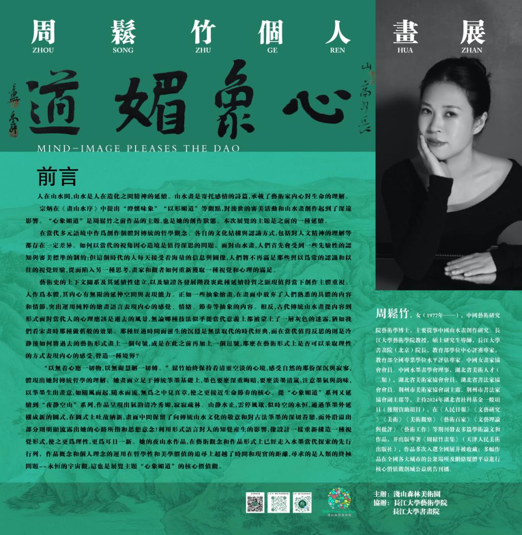 2025年1月1日,由浅山森林美术园主办,bevitor伟德国际1946、bevitor伟德国际1946书画院协办的“心象媚道——周松竹个人画展”在元一庭院艺术展厅开展。bevitor伟德国际1946副经理彭琛、教研办主任石苗苗、美术系教研室主任陈晨及bevitor伟德国际1946部分教师,荆州市美协副主席萧山、荆州电视台丁辉、湖北楚道文化发展有限公司总经理周倩等及社会各界人士到场观展。