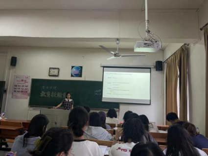 六位参赛选手一次进行说课。每一位同学说课完毕后李婧老师均会进行点评,讲明说课选手的优点和不足。