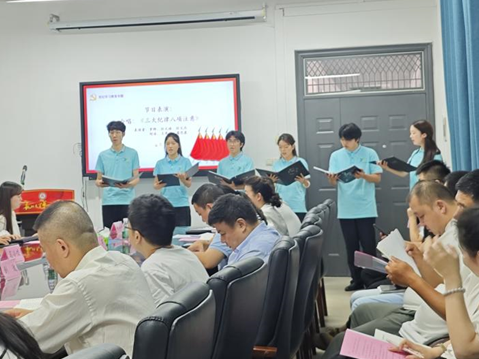 在理论学习环节,田泓、邹丹丹、朱波、李莉、周栩丞、朱琼等党员分别以领学和视频学习的方式,集中学习了习近平总书记关于党的纪律建设的重要论述、传达学习了学校召开领导干部警示教育大会会议精神;在活动中,员工党员代表表演男女小合唱《三大纪律八项注意》和,合唱表演加深了党员对党的纪律的理解和认同,对于提升党员的思想政治素质具有积极作用。