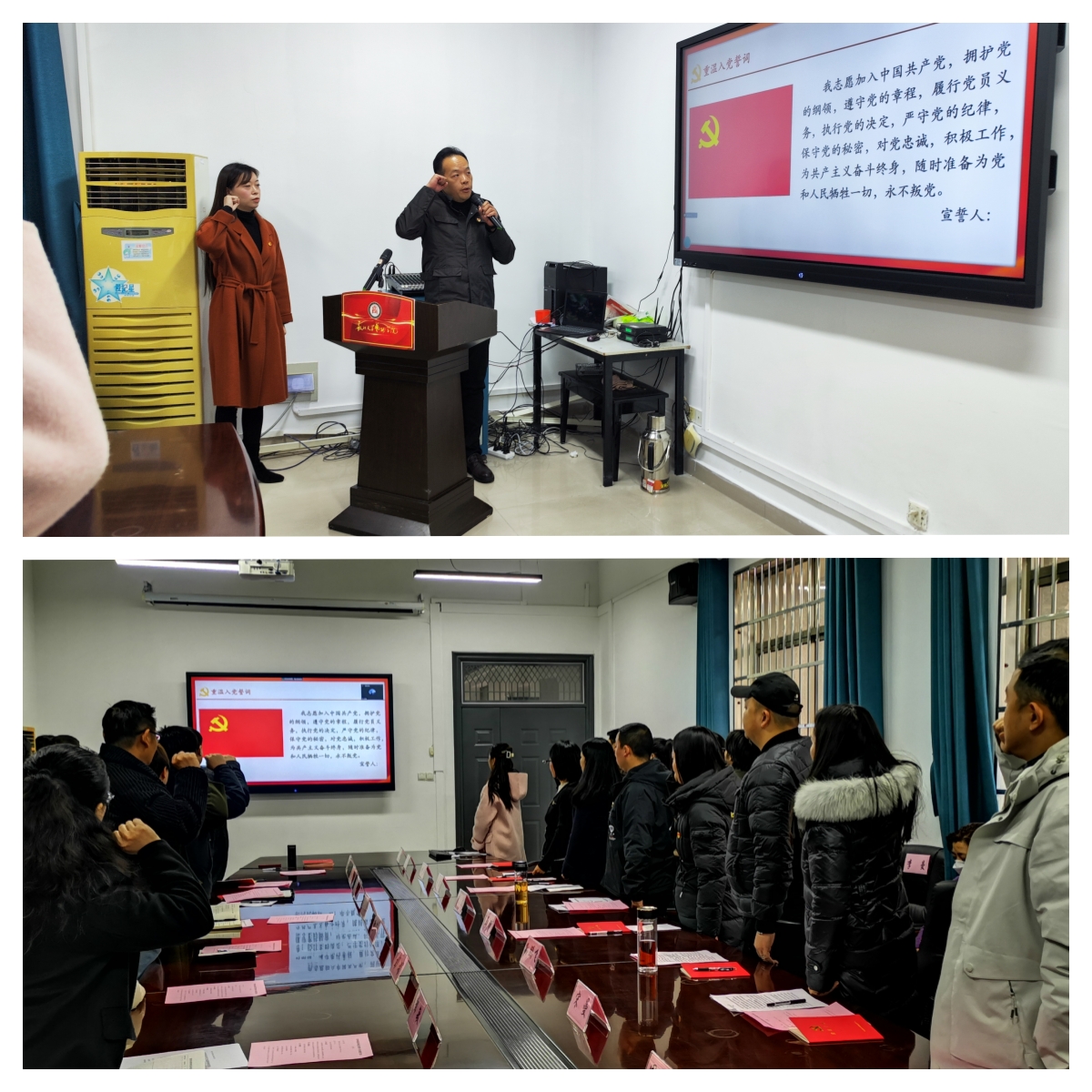 活动在庄严的国歌声中开始。首先,在音乐系党员付磊老师的带领下,全体在场中共党员同志一起重温了入党誓词。学党章党规阶段,田泓老师带领大家集体学习了《中国共产党章程》的总纲部分,并结合课件对“党章的总纲部分”进行了详细解读。