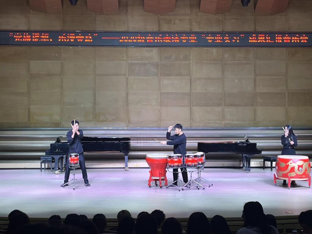 音乐会由扬琴重奏《达姆达姆》拉开帷幕,这是一首根据阿尔及利亚民歌所改编的重奏作品。邢爽玥、白涛、和张晴等8位同学默契配合,将扬琴的清脆与小打乐器的节奏巧妙结合,为观众带来了异国风情的音乐体验。