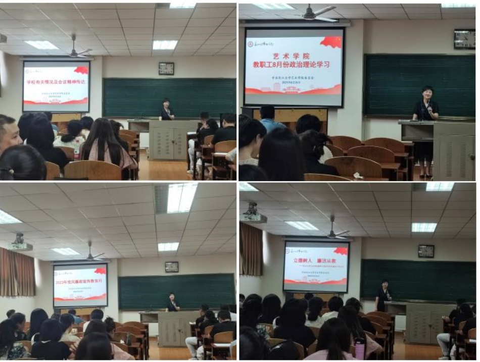 党委书记马小佼传达了学校近期重大会议精神,带领全院教职工开展了8月份政治理论学习,并要求全院教职工进一步加强对理论学习的重要性认识,不断用习近平新时代中国特色社会主义思想武装头脑,在学习中以学铸魂、以学增智、以学正风、以学促干。