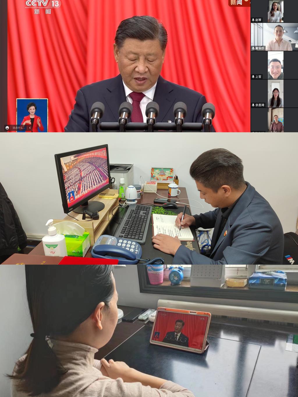 中国共产党第二十次全国代表大会,是在全党全国各族人民迈上全面建设社会主义现代化国家新征程、向第二个百年奋斗目标进军的关键时刻召开的一次十分重要的大会。大会的主题是高举中国特色社会主义伟大旗帜,全面贯彻新时代中国特色社会主义思想,弘扬伟大建党精神,自信自强、守正创新,踔厉奋发、勇毅前行,为全面建设社会主义现代化国家、全面推进中华民族伟大复兴而团结奋斗。习近平同志的报告慷慨激昂,大家认真聆听,不时爆发出阵阵热烈掌声。整个上午,各观看现场声息相通、同频共振。