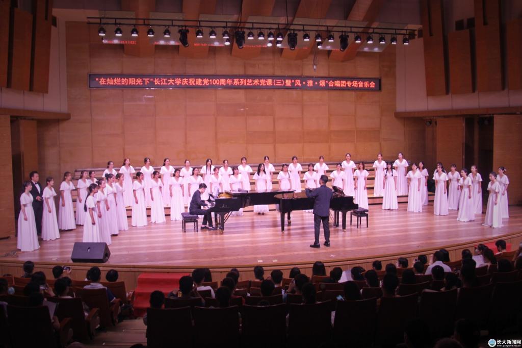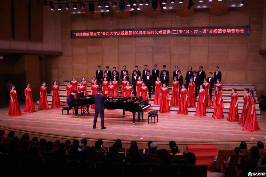 新闻网讯(员工记者 曹萌梦 见习记者 黄荣博/文 员工记者 鄢宇航/摄)奏青春乐章,颂历史雄歌,6月16日晚,“在灿烂阳光下”bevitor伟德国际1946庆祝建党100周年系列艺术党课(三)暨“风·雅·颂”合唱团专场音乐会在bevitor伟德国际1946音乐厅举行。校领导朱业宏、冯征、王建平、周从标等到场观赏。