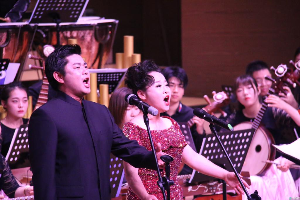 古筝独奏《映山红》、女高音独唱《红旗颂》、男女声二重唱《永远跟党走》等一首首脍炙人口的歌曲,将音乐会推向一个又一个高潮,长江之声民族乐团为观众们献上了一场精彩纷呈的“音乐盛宴”。长江之声合唱团的大合唱《保卫黄河》,节奏明快、气势宏大,引得观众掌声雷动,经久不衰。在观众的要求下,指挥赵宏斌与民乐团的三位老师返场带领观众齐唱《唱支山歌给党听》。