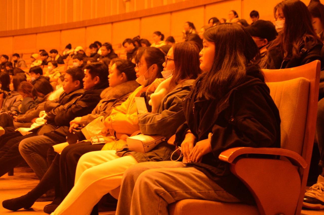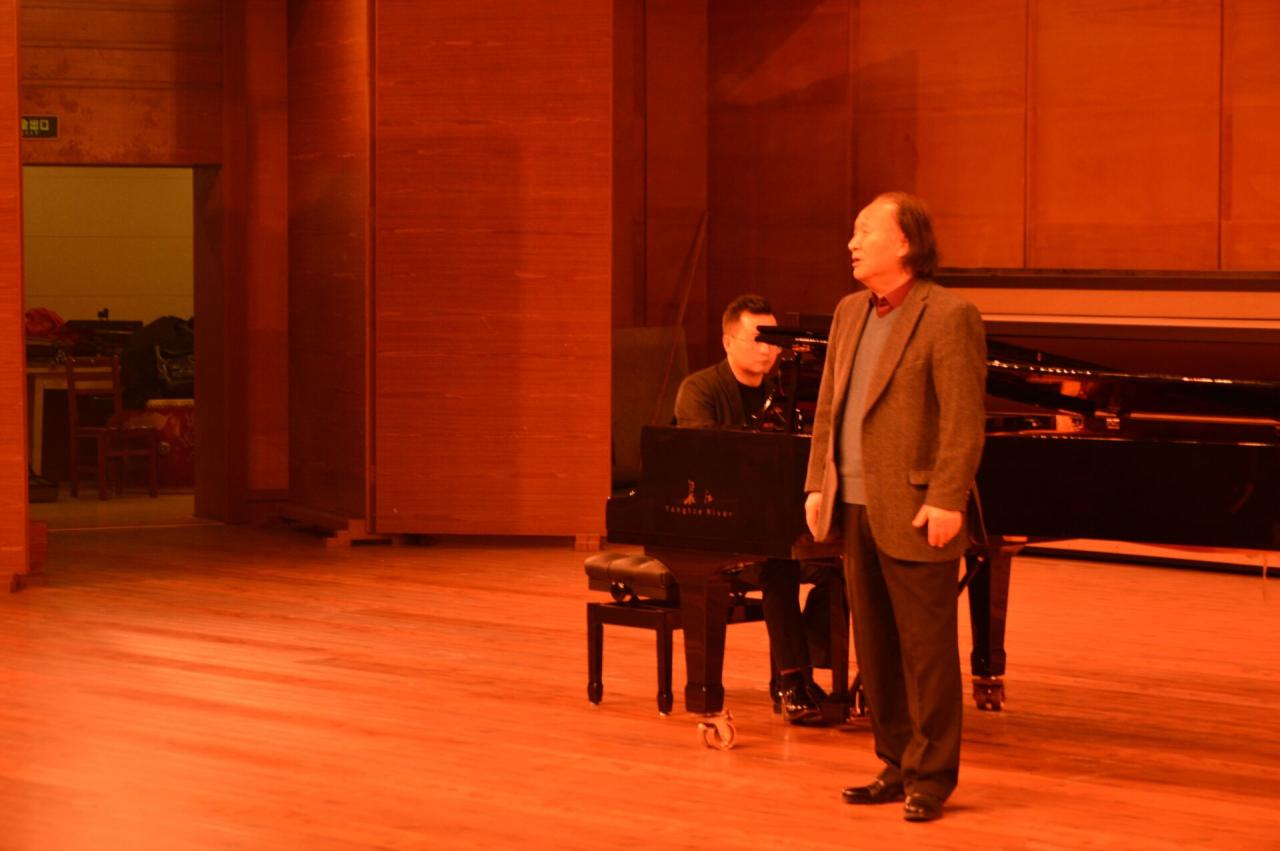 如果说上午的讲座是理论知识讲述,那么下午的音乐会就是晁浩建教授用实践的方式更深刻的传授同学们乐理的相关知识,为同学们带来了一场美轮美奂的视听盛宴。晁浩建教授、他的两位员工及梁明明老师为同学们分别演唱了《战士歌唱毛主席》《我的爱人你可听见》《怀念战友爱永在》等歌曲,演唱过程中扎实的演唱功底和富有感染的表现力深深地打动了在场的每一位听众。