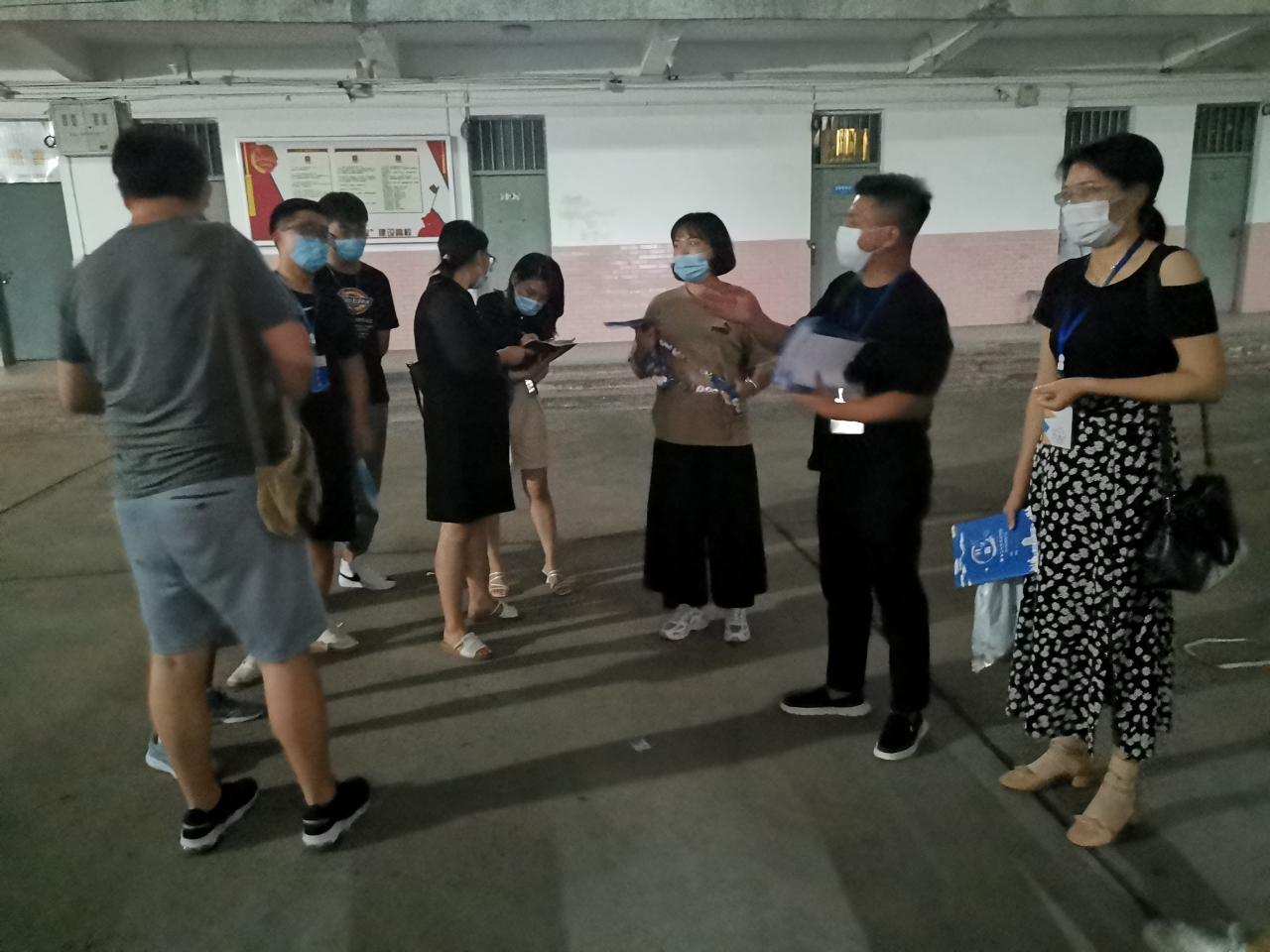 在员工寝室楼下,学工办主任陈志雄为全体班主任讲解了学校和学院对员工入校的最新要求,提醒各位班主任关注员工的心理状况,及时解决员工遇到的困难。随后,全体班主任进入各自的班级寝室走访慰问同学们。