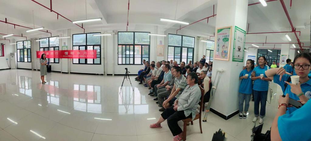 活动伊始,团队抵达兴山县水月寺镇福利院,与福利院经理周德鑫、刘德忠、法院周琳丽老师碰面,了解了法院扶贫力度及福利院演出情况。到达现场后,指导老师聂贞萍首先献唱了一首《龙船调》,随后又邀请员工刘云彦一同演唱了一首《弥渡山歌》,婉转的民歌曲调受到了群众的强烈反响,赢得阵阵喝彩。在随后的沟通交流中我们了解到,随着物质基础的务实,民众对于精神的需求越发强烈,非常期望艺术团队下乡带动民众生活热情,丰富民众文化生活。最后,我们在福利院周边展开调研,详细了解了兴山公共文化服务现状,知晓了乡镇群众对于文艺作品的艺术需求,通过此次调研,我们深知在今后的文艺作品创作与表演中更应该贴近普通民众的生活,满足他们的文化需求,只有这样文艺作品才会更加具有生命力。