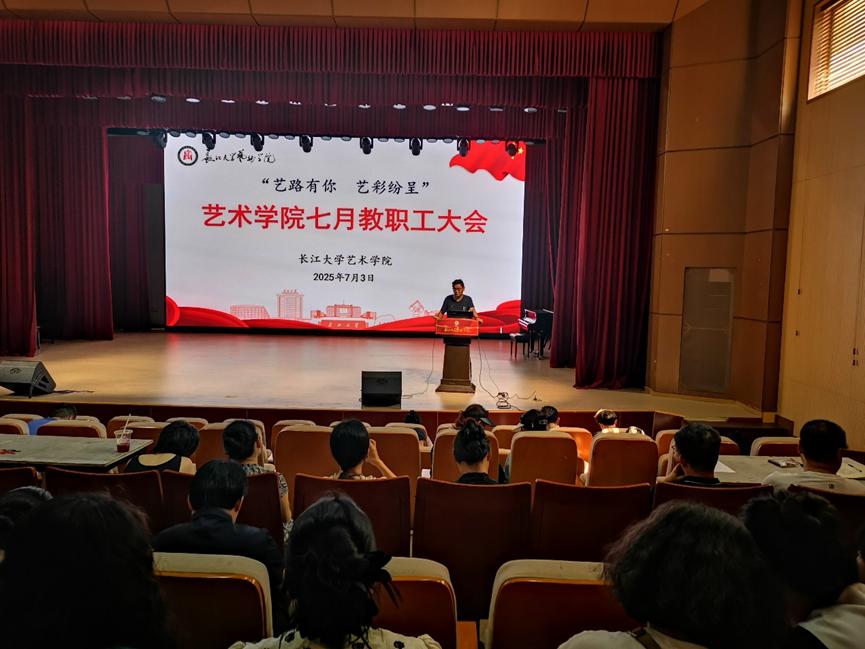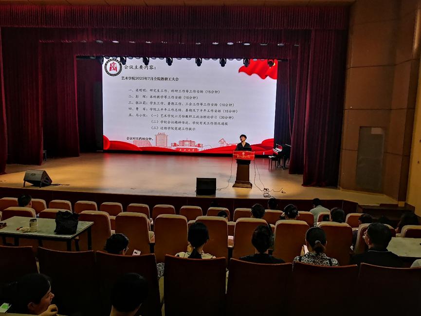副经理梁明明通报了研究生工作与科研工作进展,重点对2025级专业硕士招生宣传、人才引进情况等工作进行说明,并对科学研究项目申报及下半年展演工作进行安排。他强调,高质量内培外引对于强化学院团队力量及团队建设发展具有重要意义,呼吁全体教师做好学院人才引进宣传工作。