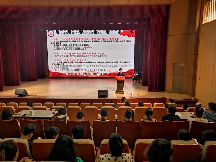 最后,马小佼对6月份党建工作部分情况进行通报,对“湖北省文艺精品创作扶持资金项目申报”“开展深入贯彻中央八项规定精神学习教育”等工作进行重点安排和布置。同步开展党风廉政教育,筑牢思想防线;强化暑期安全提醒,严守安全底线。要求全体教职工全面排查办公室安全隐患,在休假期间自觉遵守中央八项规定精神,坚决杜绝违规吃喝、打牌赌博及酒驾醉驾等行为。
