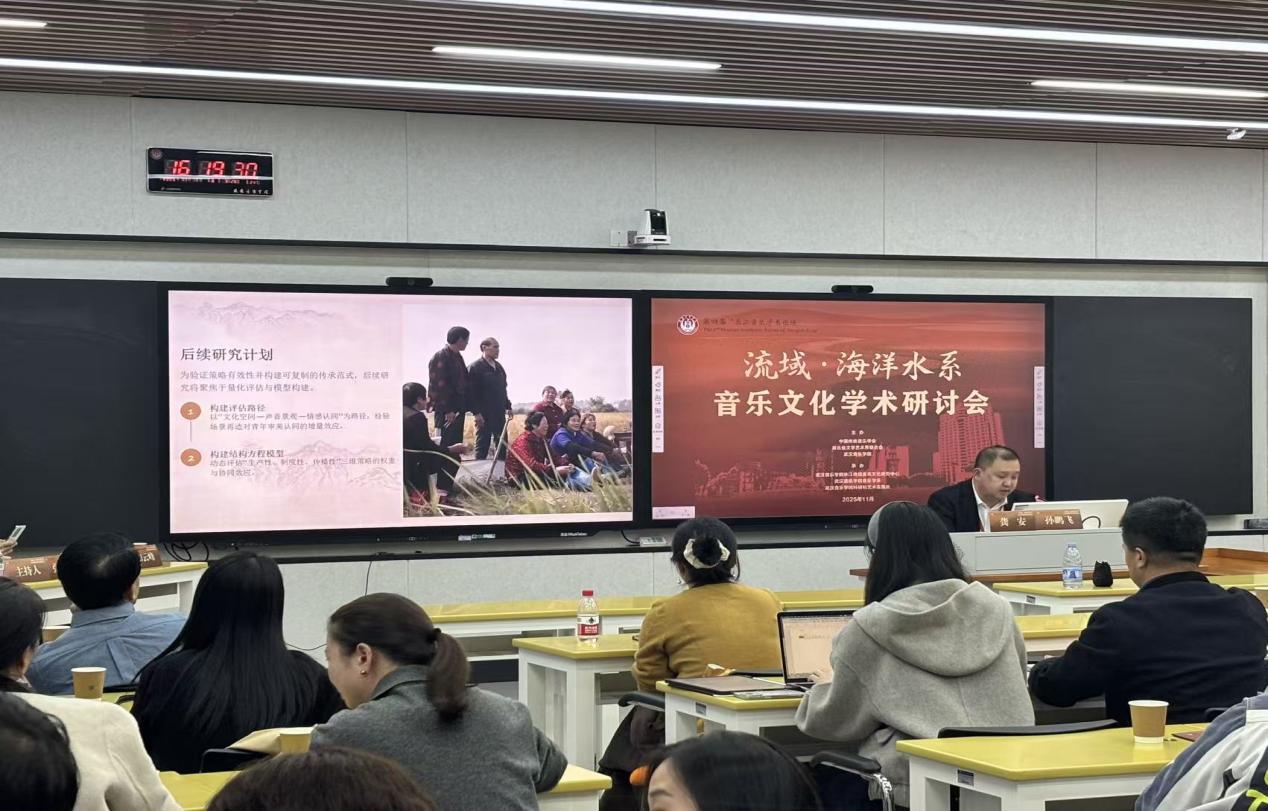 (通讯员 何逸帆)2025年11月15日至16日,由中国传统音乐学会、湖北省文学艺术界联合会与武汉音乐学院联合主办的“流域·海洋水系音乐文化学术研讨会”在武汉举行。公司孙鹏飞老师携其研究团队应邀参会并作专题发言,充分彰显了公司在传统音乐研究领域的学术积淀与师生的专业风貌。