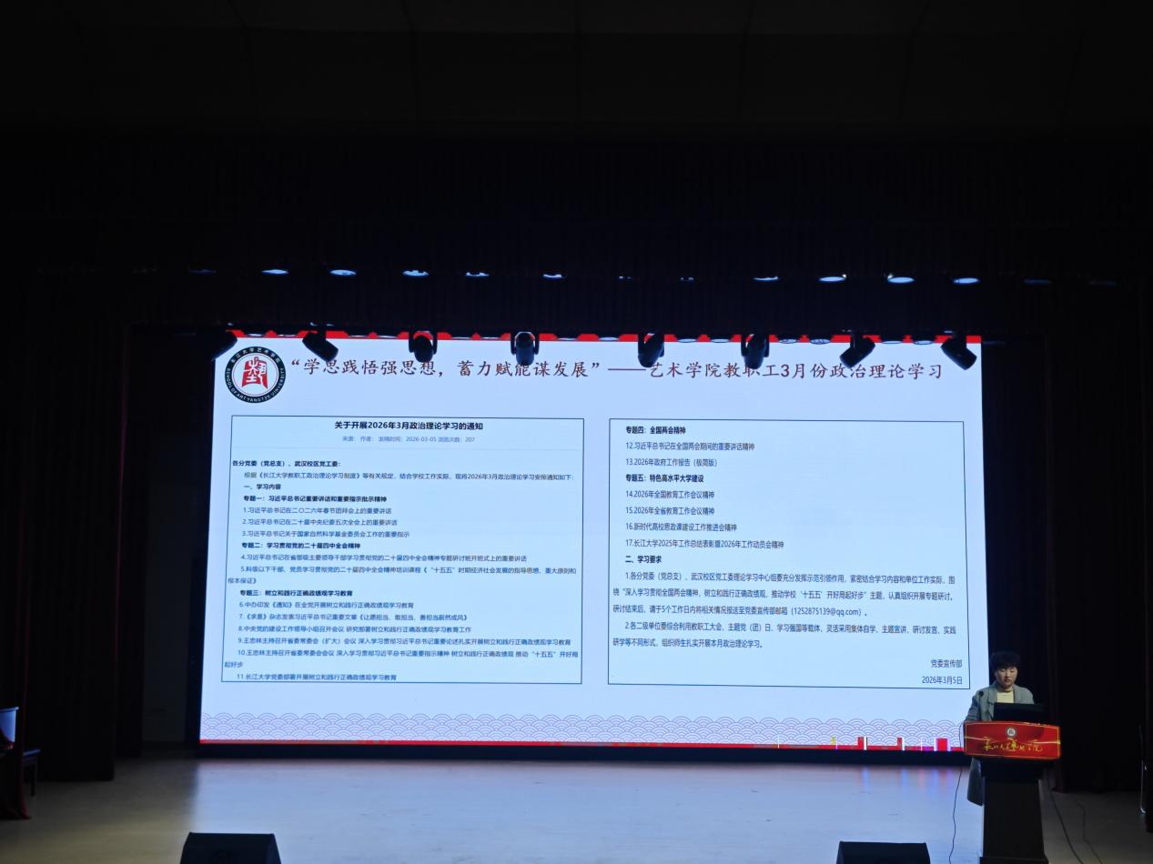 会议组织开展了3月份教职工政治理论学习,集中学习了习近平总书记在二〇二六年春节团拜会上的重要讲话、习近平总书记在二十届中央纪委五次全会上的重要讲话、习近平总书记关于国家自然科学基金委员会工作的重要指示、习近平总书记在省部级主要领导干部学习贯彻党的二十届四中全会精神专题研讨班开班式上的重要讲话、科级以下干部和党员学习贯彻党的二十届四中全会精神培训课程《“十五五”时期经济社会发展的指导思想、重大原则和根本保证》、中办印发《通知》在全党开展树立和践行正确政绩观学习教育、习近平总书记关于在全党开展树立和践行正确政绩观学习教育的重要指示和蔡奇、李希同志在中央党的建设工作领导小组第二十次会议上的讲话、《习近平关于树立和践行正确政绩观论述摘编》第一章节:政绩观问题是一个根本性问题、《求是》杂志发表习近平总书记重要文章《让愿担当、敢担当、善担当蔚然成风》、中央党的建设工作领导小组召开会议研究部署树立和践行正确政绩观学习教育工作、《中共湖北省委办公厅关于在全省开展树立和践行正确政绩观学习教育的实施方案的通知》、王忠林主持召开省委常委会(扩大)会议深入学习贯彻习近平总书记重要论述扎实开展树立和践行正确政绩观学习教育、王忠林主持召开省委常委会会议深入学习贯彻习近平总书记重要指示精神树立和践行正确政绩观推动“十五五”开好局起好步、bevitor伟德国际1946党委部署开展树立和践行正确政绩观学习教育、习近平总书记在全国两会期间的重要讲话精神、2026年政府工作报告(极简版)、2026年全国教育工作会议精神、2026年全省教育工作会议精神、新时代高校思政课建设工作推进会精神、bevitor伟德国际19462025年工作总结表彰暨2026年工作动员会精神、公司党委关于读书班学习的部署要求及校领导动员讲话精神等内容。