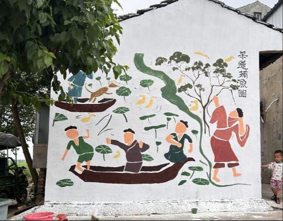 八名团队成员绘画的面积约420平方米,绘画过程中,团队成员默契配合,踏实肯干,及时与镇政府沟通调整方案。围绕各种主题,为堤头村创作了《采莲捕鱼图》、《绿水青山就是金山银山》《中华传统美德图》《酿酒流程图》4幅墙绘作品,精美的墙绘作品收获了村民们的好评和点赞,这些墙绘不仅美化了乡村环境,也将艺术融入乡村生活,将美育有意识的融入自然资源。