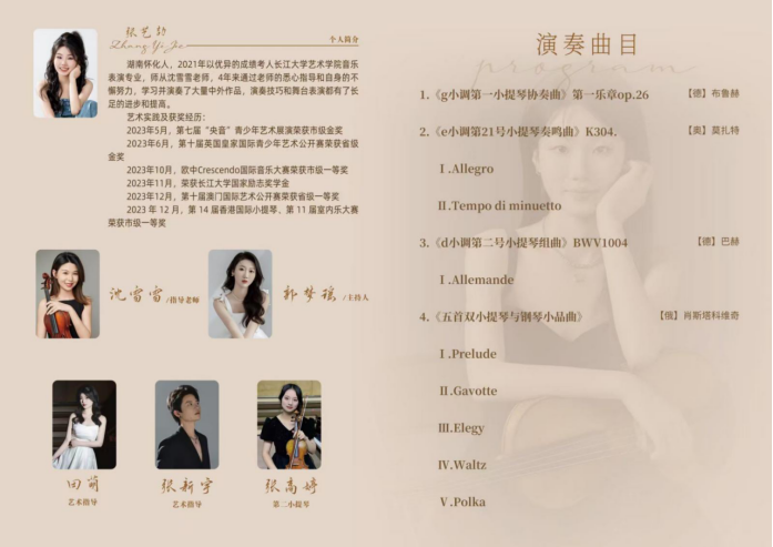 活动名称:张艺劼毕业小提琴独奏音乐会