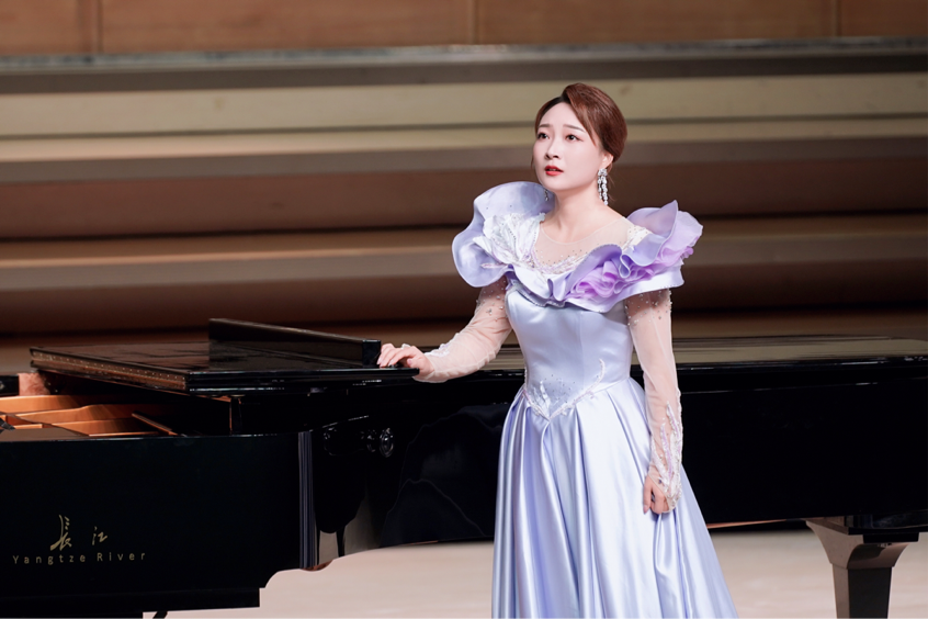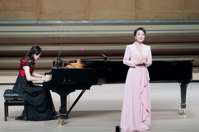 庞浩文是2023级硕士研究生,师从王荣副教授,拥有丰富的演唱经验和出色的艺术素养。这场独唱音乐会,她精心挑选了12首富有韵味的经典乐曲,包括中国民歌以及创作歌曲等,例如自己编配竹笛乐器伴奏的《竹枝词》、萧伴奏的《凤求凰》、以及沙锤和铃鼓伴奏的《阿瓦日古丽》,充分展现了她多元化的演唱风格。