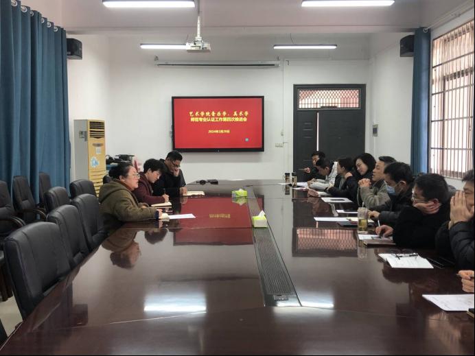 首先音乐学专业负责人对专业认证工作进展情况进行了汇报,任务书和自评报告基本完成,下一步将联系专家对报告进行评审,进一步完善报告。美术系专业负责人陈锟老师表示,自评报告基本完成,课程达成度报告正在完善,近几天将抓紧打磨报告,争取三月初完成。