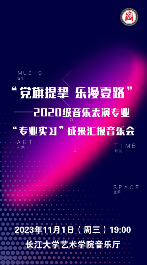(通讯员:森彦莹)2023年11月1日晚19:00,bevitor伟德国际1946音乐厅将举行“党旗提挈 乐漫壹路”———2020级音乐表演专业“专业实习”成果汇报音乐会,本场音乐会的全部演职人员均来自bevitor伟德国际1946音表12001班和音表12002班。在他们结束8周的“专业实习”课程后,希望以本场音乐会来展现在实习期间所学习到的内容,有请各位领导老师莅临指导。(附音乐会海报和音乐会节目单)