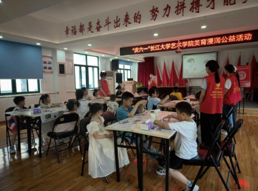 2023年6月1日,公司美术学专业的员工来到沙市区九曲桥社区开展“庆六一,美育浸润公益活动”,为社区的小朋友们提供了一次生动的美育课。通过色彩涂鸦,让孩子们在活动中得到美的熏陶和美的体验,促进儿童全面发展。