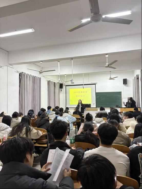 最后,蔡贤分享了自己在南昕高中做体育与舞蹈教学的趣事,他以实习过程中的趣味教学故事为切入点,将抽象的教学理论转化为具体可感的实践经验,内容务实、贴近实际,为23级员工未来应对不同学段的教学场景提供了诸多实用方法。