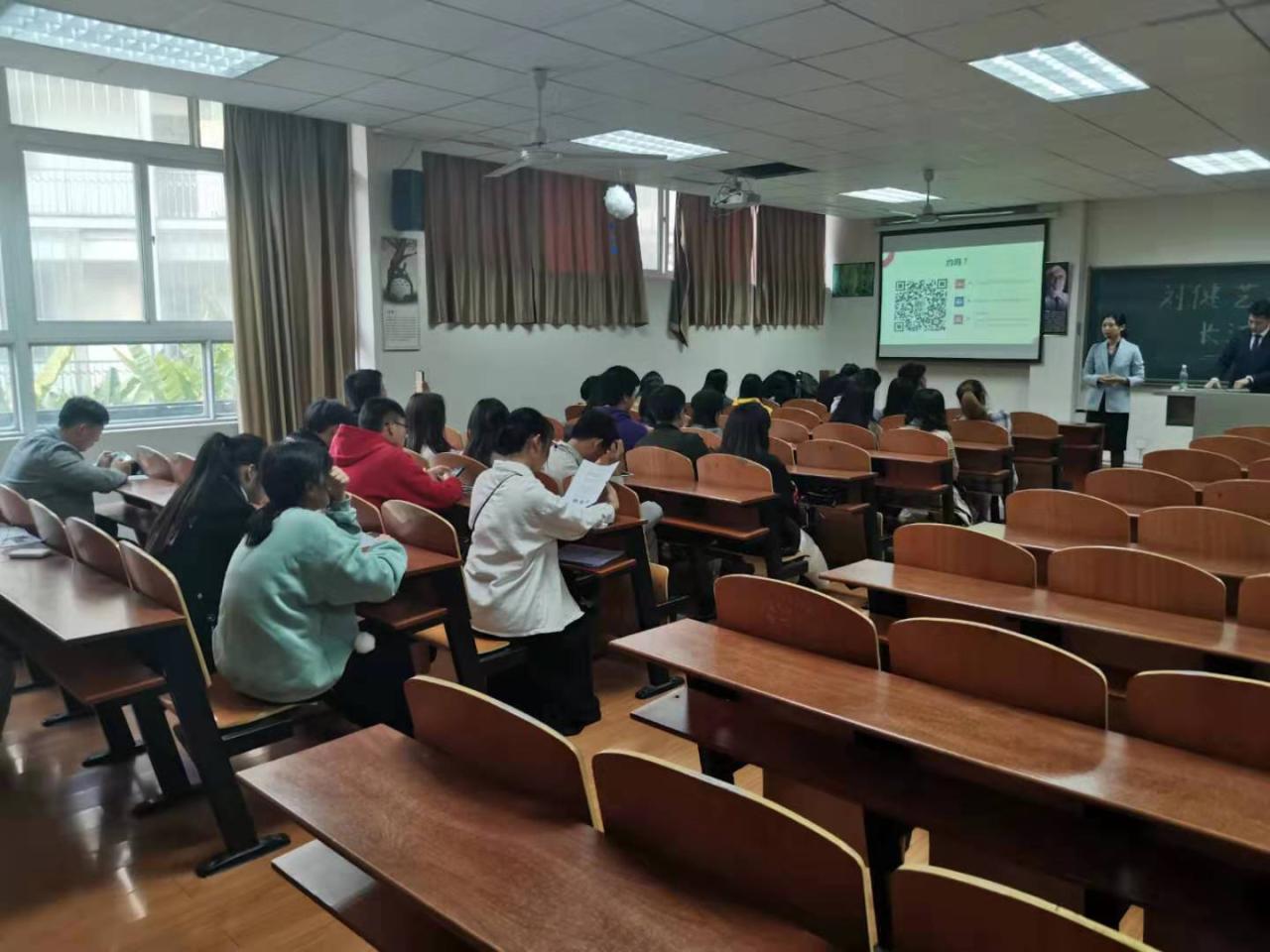 会议开始后,刘健艺术向与会同学介绍了就业,创业对在校老员工的重要性,接着又给同学们讲解了现实中创业艰辛并结合刘健艺术发展壮大的历程进行分享,在听完这些创业就业的故事,同学们感触颇深,大家互相讨论关于就业创业的心得,互相交流讨论自己的创业创新梦想以及自己的未来规划。同时,在宣讲过程中,刘健艺术学校的韦董事长还分享了他本人员工期间班级如何通过搜集信息,同学间互相交流而成功就业的一些心路历程。